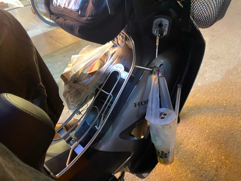 At 10:15 p.m the first order of Dat’s shift showing in the app is 1 pack of Banh mi and 2 cups of milk tea. It is a “stacked order,” meaning he must deliver to two separate locations. The banh mi shop is still open but nearly empty. After checking the items, Dat heads out quickly to stay on schedule.